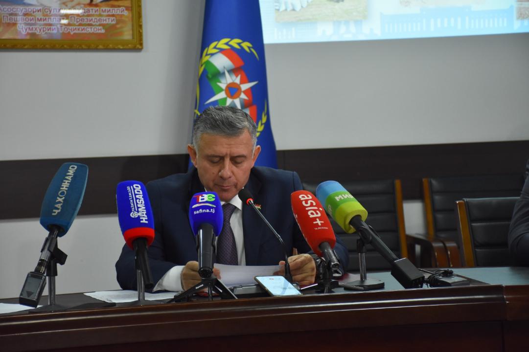 Ҳамзамон, муовинони Раис ва роҳбарони сохторҳои соҳавӣ вобаста ба самтҳои фаъолияти худ баромад намуда, ба саволҳои намояндагони васоити ахбори омма доир ба ҳолати кунунии хавфҳои табиӣ ва техногенӣ, корҳои наҷотдиҳӣ, татбиқи барномаҳои давлатӣ ва ҳамкориҳои байналмилалӣ ҷавобҳои мушаххас доданд.
