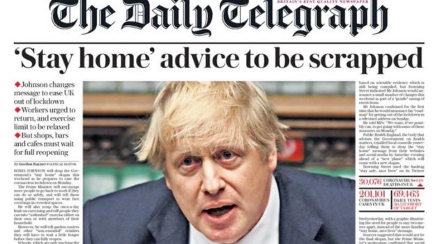 Имрӯз нашрияи машҳури британиёии Daily Telegraph бо сарлавҳаи ҳангомабарангези “Машварати дар хона мондан лағв мешавад” нашр гардид. Ҳукумати Британияи Кабир нақшаи нави худ дар мавриди карантинро танҳо рӯзи якшанбе эълон мекунад. Аммо Дейли Телеграф бо истинод ба манбаъҳои худ дар ҳукумат навиштааст, ки талаботу низоми қатъии худинзивоъ аввали ҳафтаи оянда лағв карда хоҳад шуд.