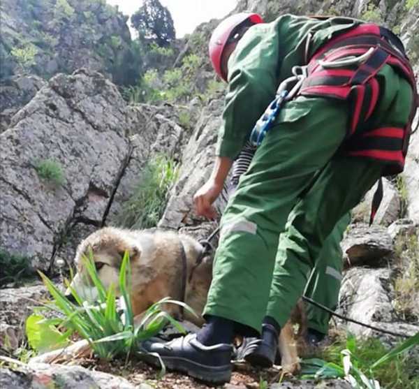 Баробари расидани хабар имдодгарон ба ҷойи ҳодиса расиданд ва бо истифода аз дастгоҳи куҳгардӣ то ба назди саг худро расонданд ва ин ҳайвони дармондаро наҷот доданд. Аз боло то ба поён фароварданд ва дар замин раҳо намуданд.