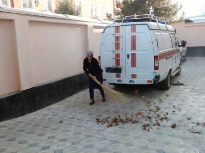 Кормнадони Раёсат гирду атрофи биноро рубучин карданд, гулу буттаҳои ҳавлии Дастаи махсуси зудамали наҷоти Раёсат, шўъба ва бахшҳои ноҳиявии онро ба тартиб дарварданд.